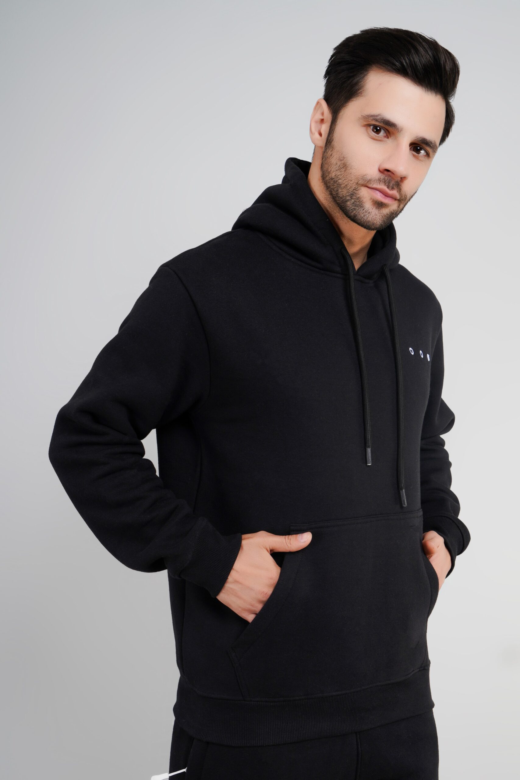 Crafted with you in mind, our black cotton fleece hoodie is designed to keep you perfectly balanced—warm on the inside and effortlessly cool on the outside. From its cloud-soft feel to its enveloping warmth, every detail is tailored for your comfort and style. Blending street-smart vibes with thoughtful craftsmanship, this is winterwear, upgraded.