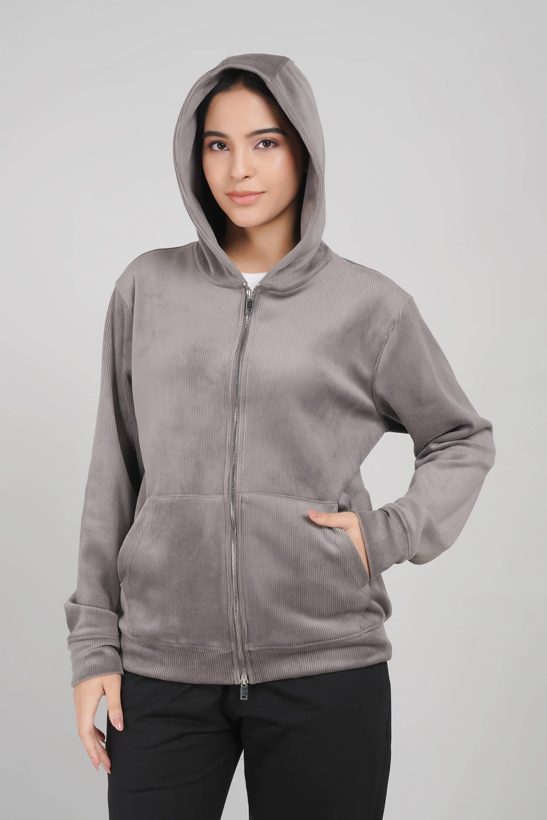 GREY DOUBLE ZIP UNISEX HOODIE