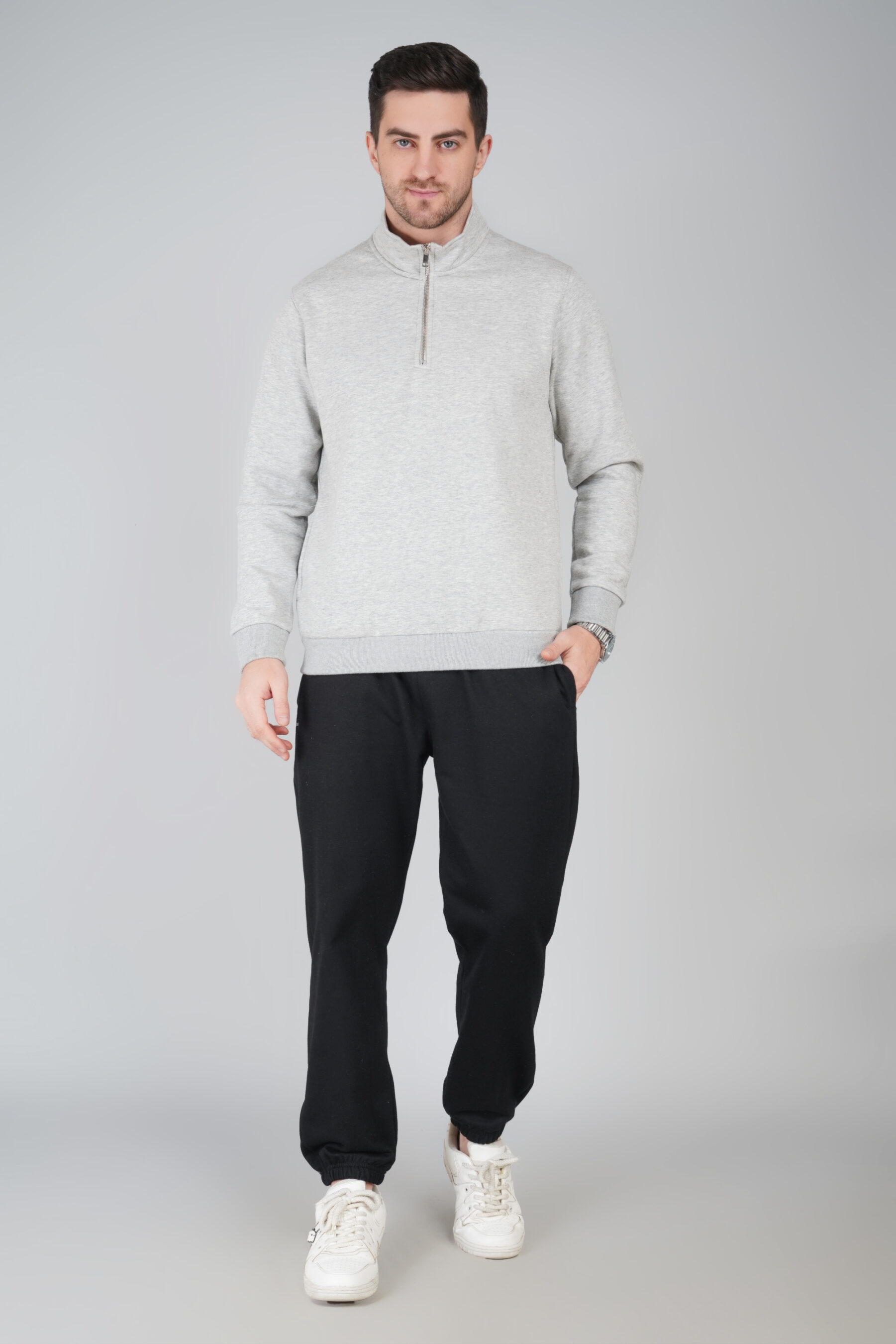 Defy this season’s chill without comprising style with our elite Half Zip Sweatshirt, crafted from plush 340 GSM cotton fleece for heavy-duty warmth that feels effortlessly light. Our sweatshirt’s regular fit with a sleek half zipper and side pockets delivers unmatched quality in the range. This cold, flaunt yourself with a bold fashion statement!‌ Savvy?